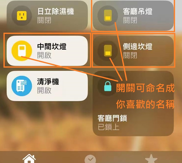 你能按照你喜歡名稱去命名,屆時便能利用行動裝置去做控制,後續進一步再做自動化/情境的設計。若是你想要聲控,只要再搭配蘋果音箱Apple HomePod,輕鬆升級。