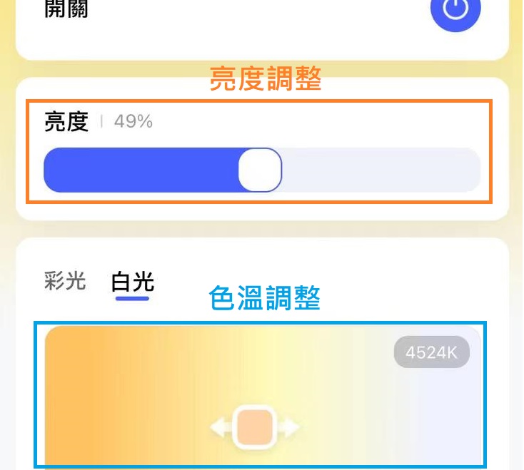 (進階推薦)除了燈切,進階會建議可以做調光需求,簡單來說就是色溫和亮度的變化。