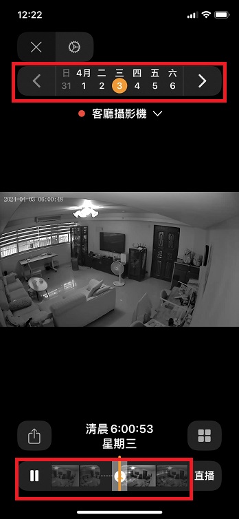 若僅使用Apple Cloud空間,50G空間方案支援1台Homekit攝影機(台灣每月30元),200G空間方案支援5台Homekit攝影機(台灣每月90元),費用上當然比僅使用MicroSD卡高出3~9倍,但能直接Homekit中看回放(下面右圖中可直接拖曳時間軸),不用開Aqara App,每月僅一個便當錢,相信仍對忠實果粉仍是相當划算的。